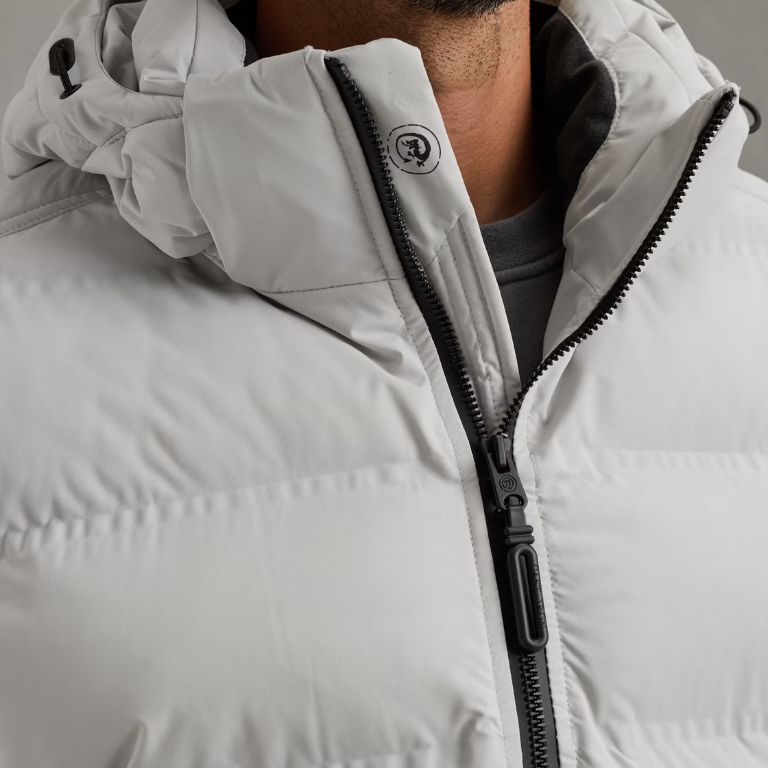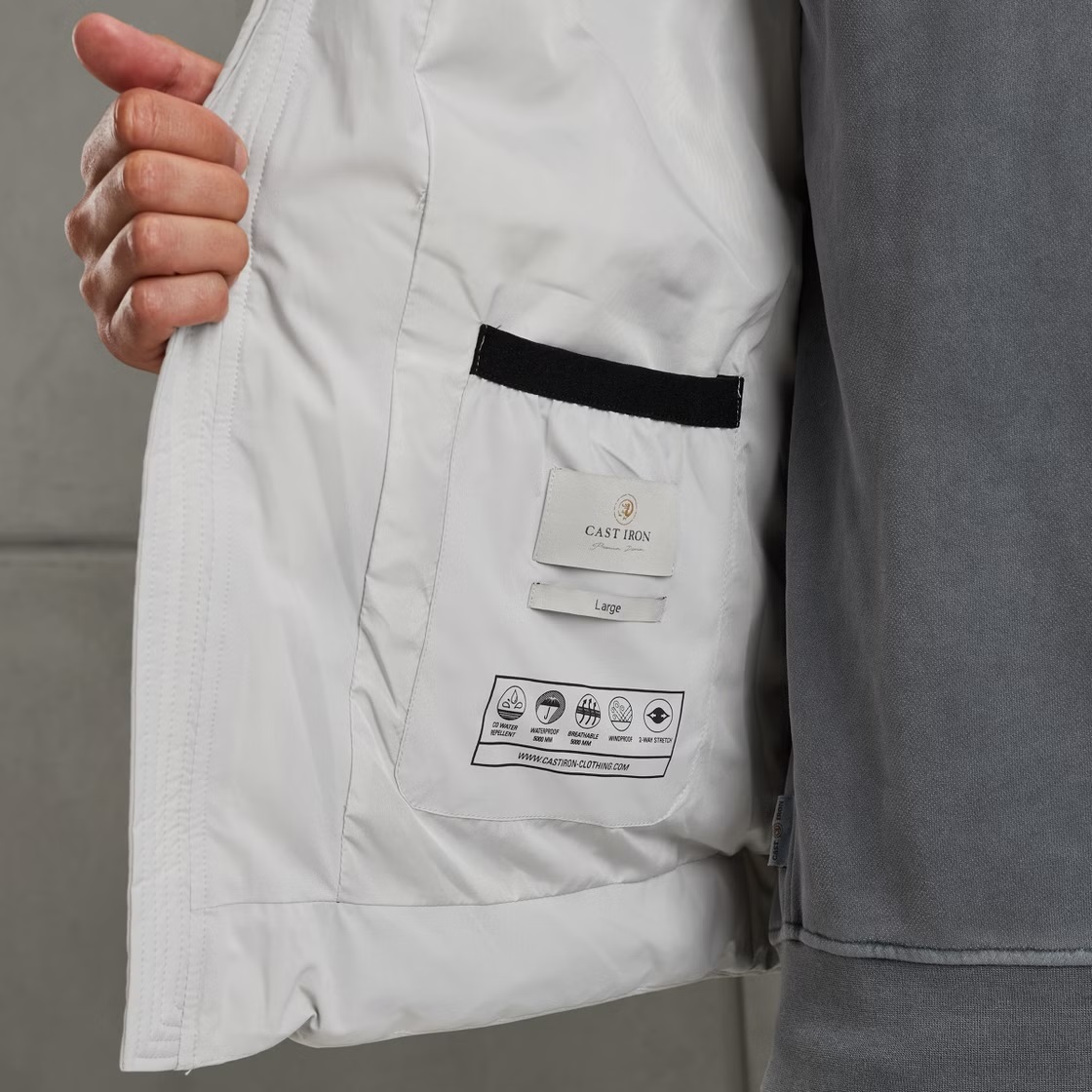 De Cast Iron Speedguard jas is uitgevoerd in waterafstotende, tweelaagse softshell met 4-way stretch en Tech Down vulling. De jas is lichtgewicht, ademend en winddicht. De heat-sealed quilting zorgt voor een stoere, moderne look. De jas is voorzien van twee zijzakken met drukknoopsluiting, een extra zijzak met ritssluiting en een binnenzak met elastische tape. Het design van de zijzakken maakt deze must-have net even anders en zorgt samen met de contrasterende ritsen voor een sportieve look. De capuchon is afneembaar en verstelbaar. De elastische cuffs aan de binnenkant van de mouwen en de zachte fleece aan de binnenkant van de kraag maken deze jas extra comfortabel om te dragen. De signature Cast Iron details, zoals de iconische back yoke, ronden het design af.