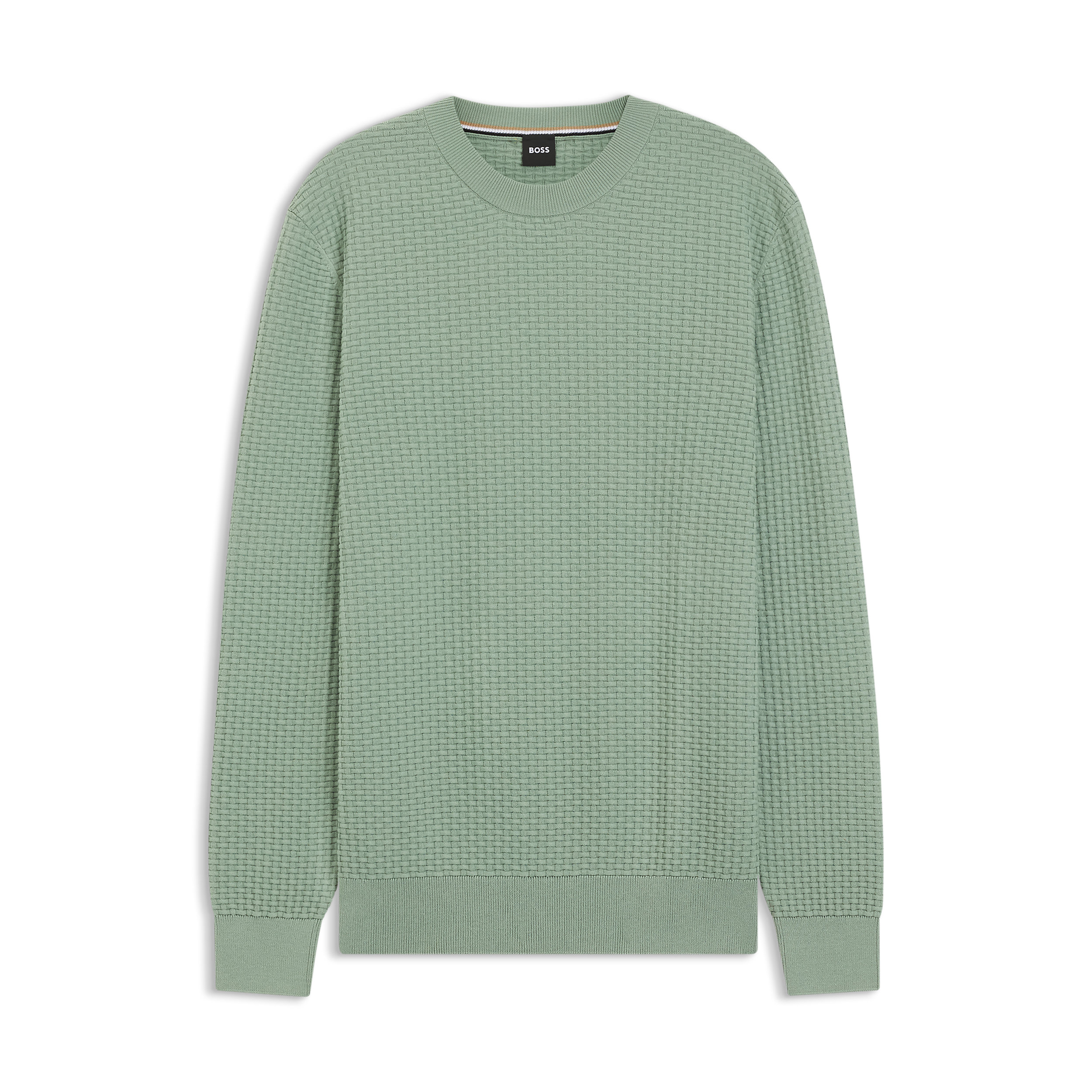 Offering classic elegance and expert craftsmanship, this BOSS Menswear sweater is knitted with a rich structure in soft cotton. Regular fit. This product contains at least 80% better raw materials. This piece is made with at least 80% cotton derived from regenerative agriculture. Regenerative agriculture prioritises the preservation and restoration of natural environments, aiming to enhancebiodiversity, maintain water quality, and improve soil health.