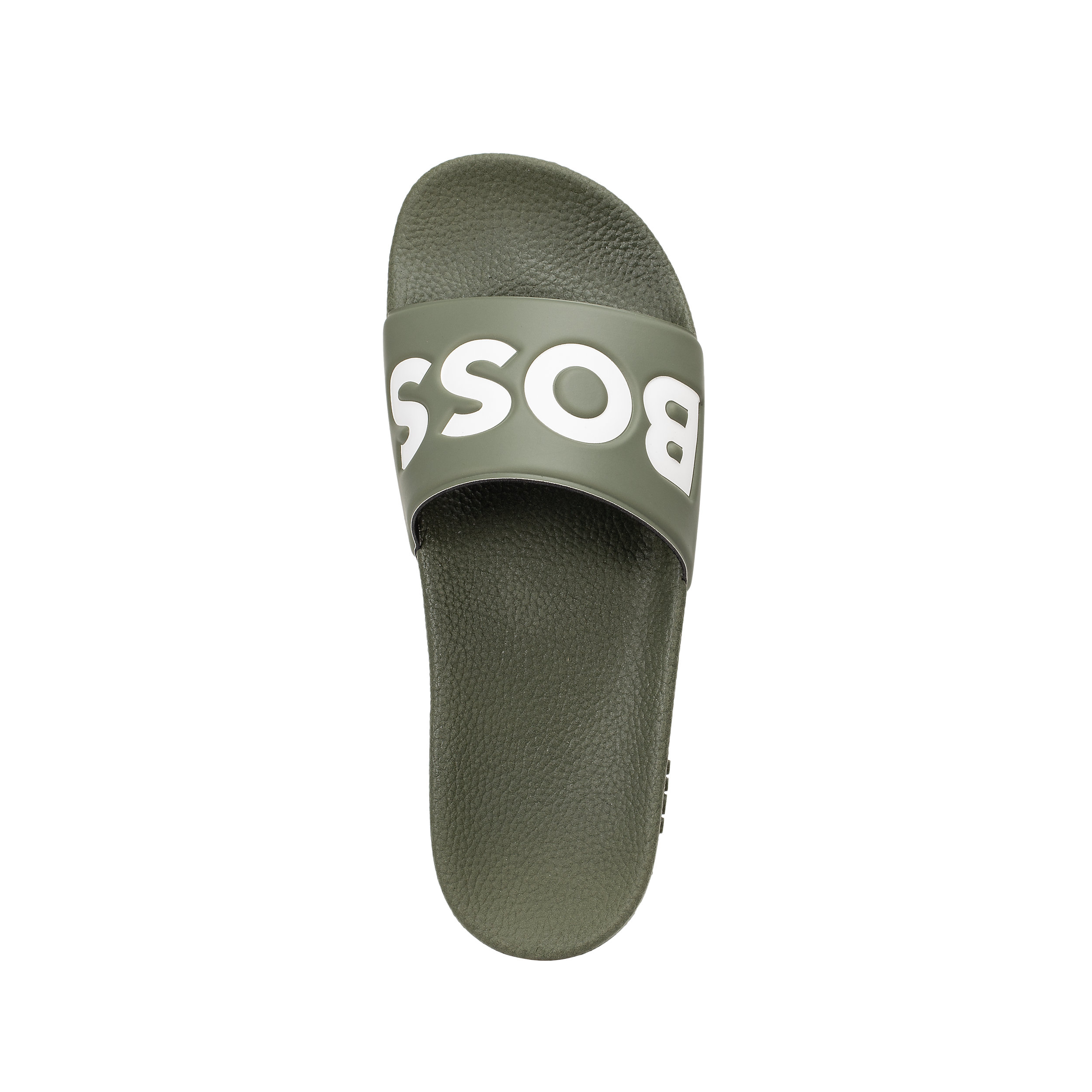 Add a statement touch to everyday looks with the bold, contrasting logo of these BOSS Menswear slides. Crafted in Italy from lightweight materials.