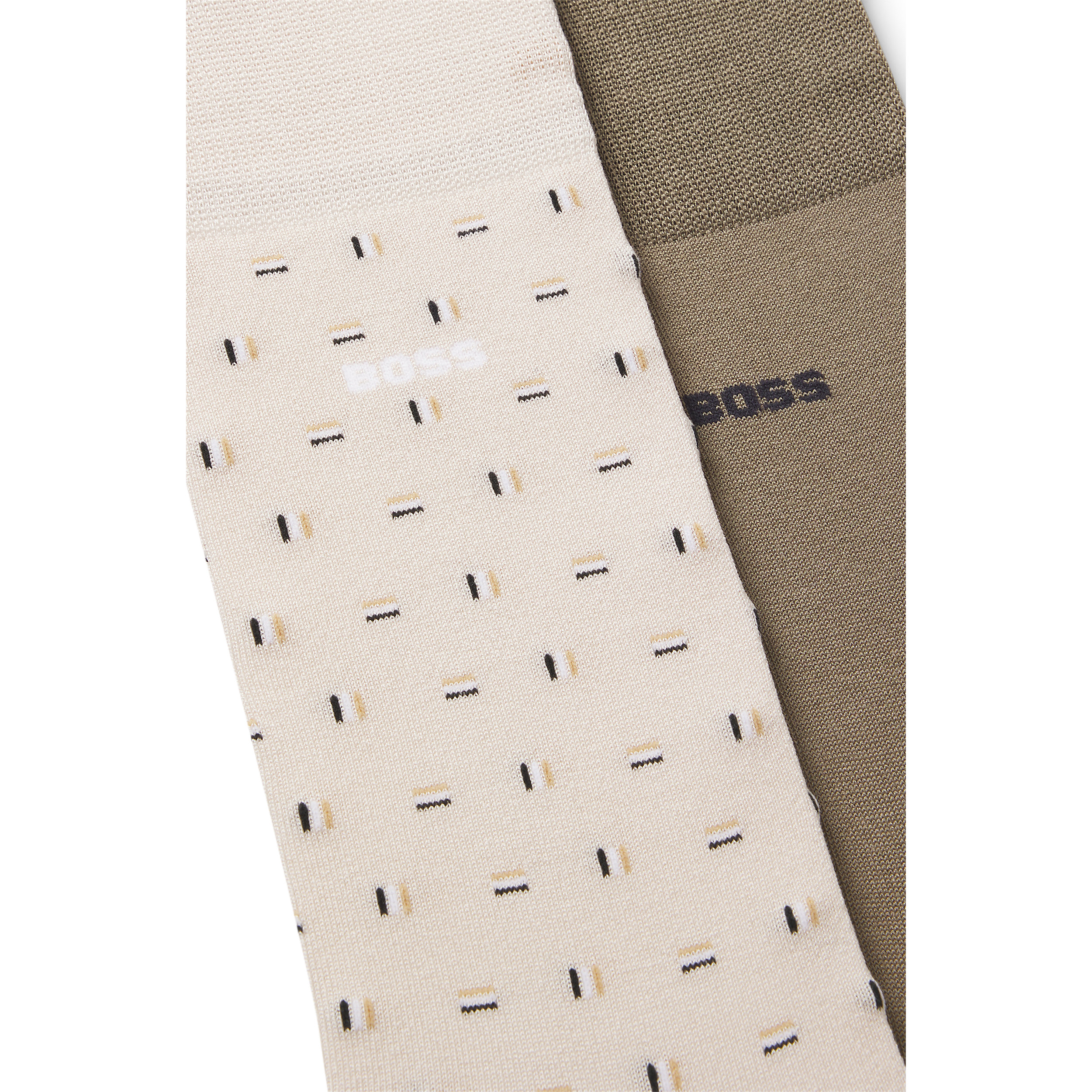 Rich in mercerised cotton for added strength and softness, these everyday BOSS Menswear socks have subtle logos. Pack includes a plain and patterned design.
