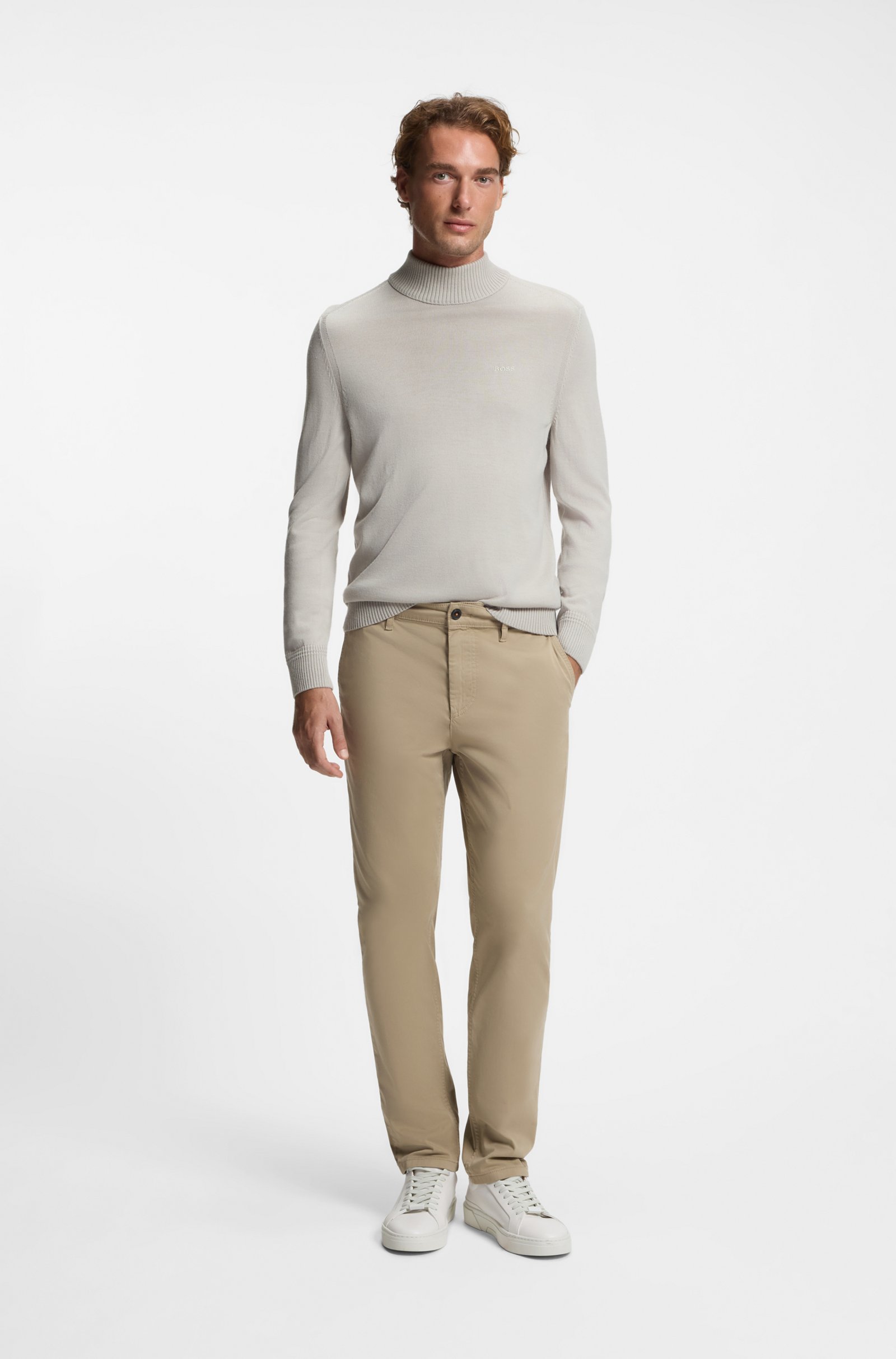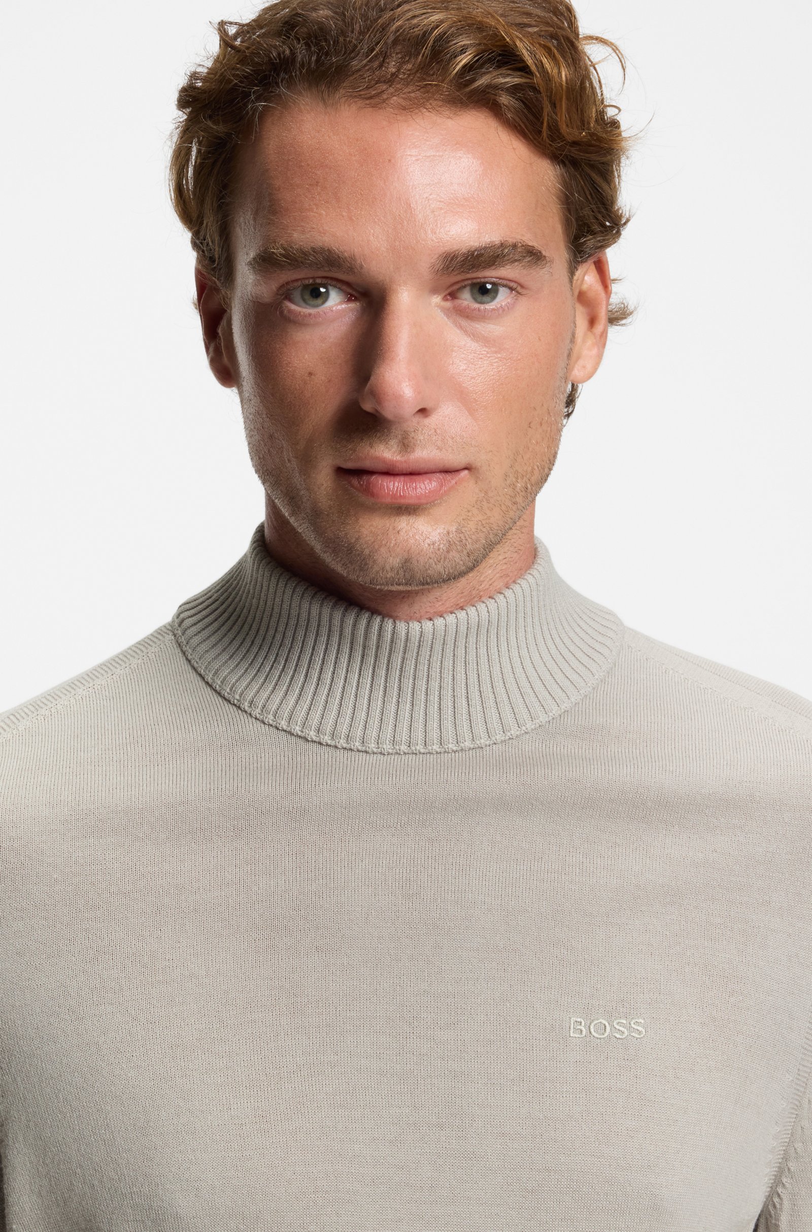 A rollneck sweater cut to a straight fit and embroidered with branding by BOSS Menswear. This product contains at least 60% better raw materials. This product is made with responsibly sourced wool. For us, responsibly sourced means mulesing free, and meeting the standards of the Five Freedoms of animal welfare.