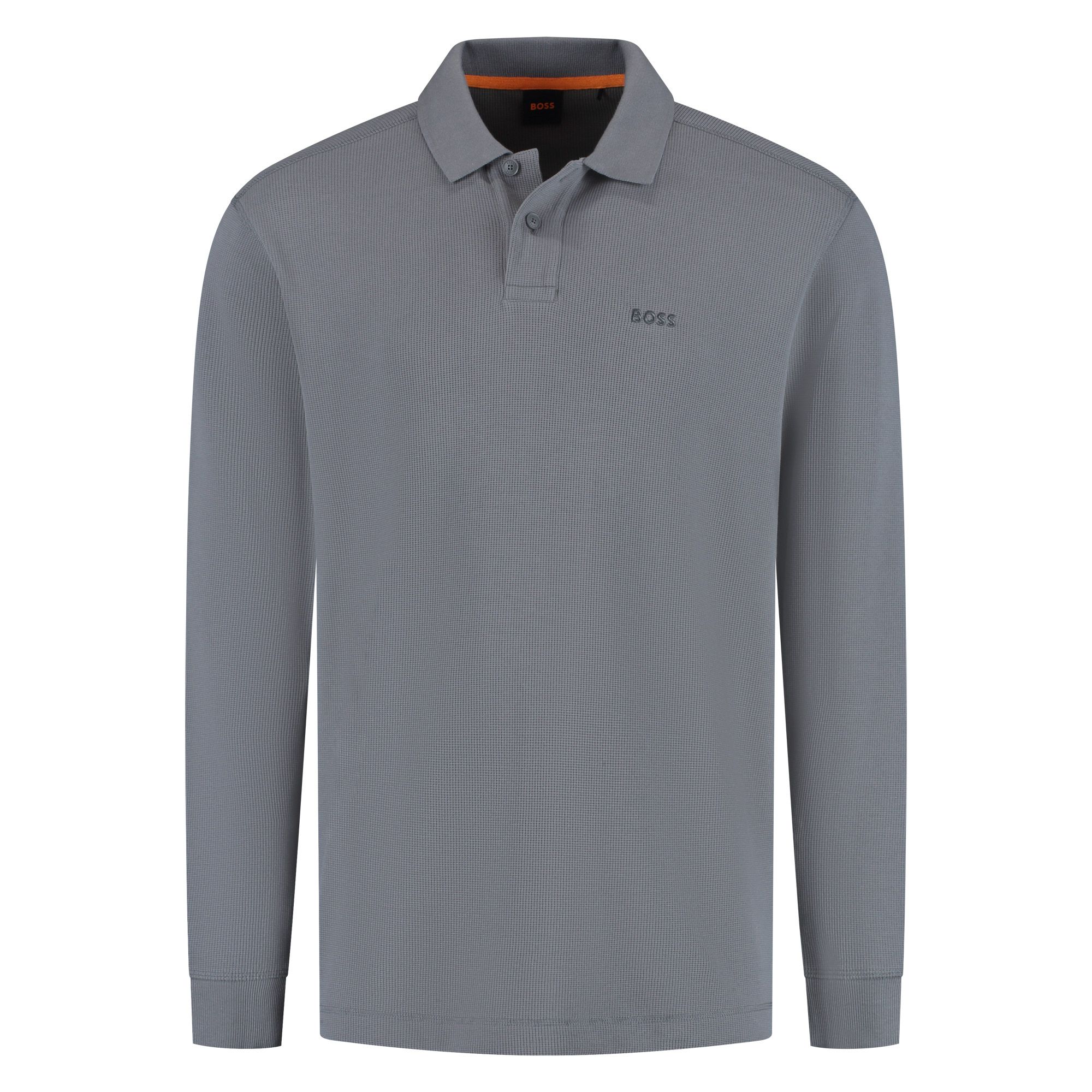 Revitalise casual looks with the waffle structure and logo label of this BOSS Menswear polo shirt. Regular fit. Soft cotton blend.