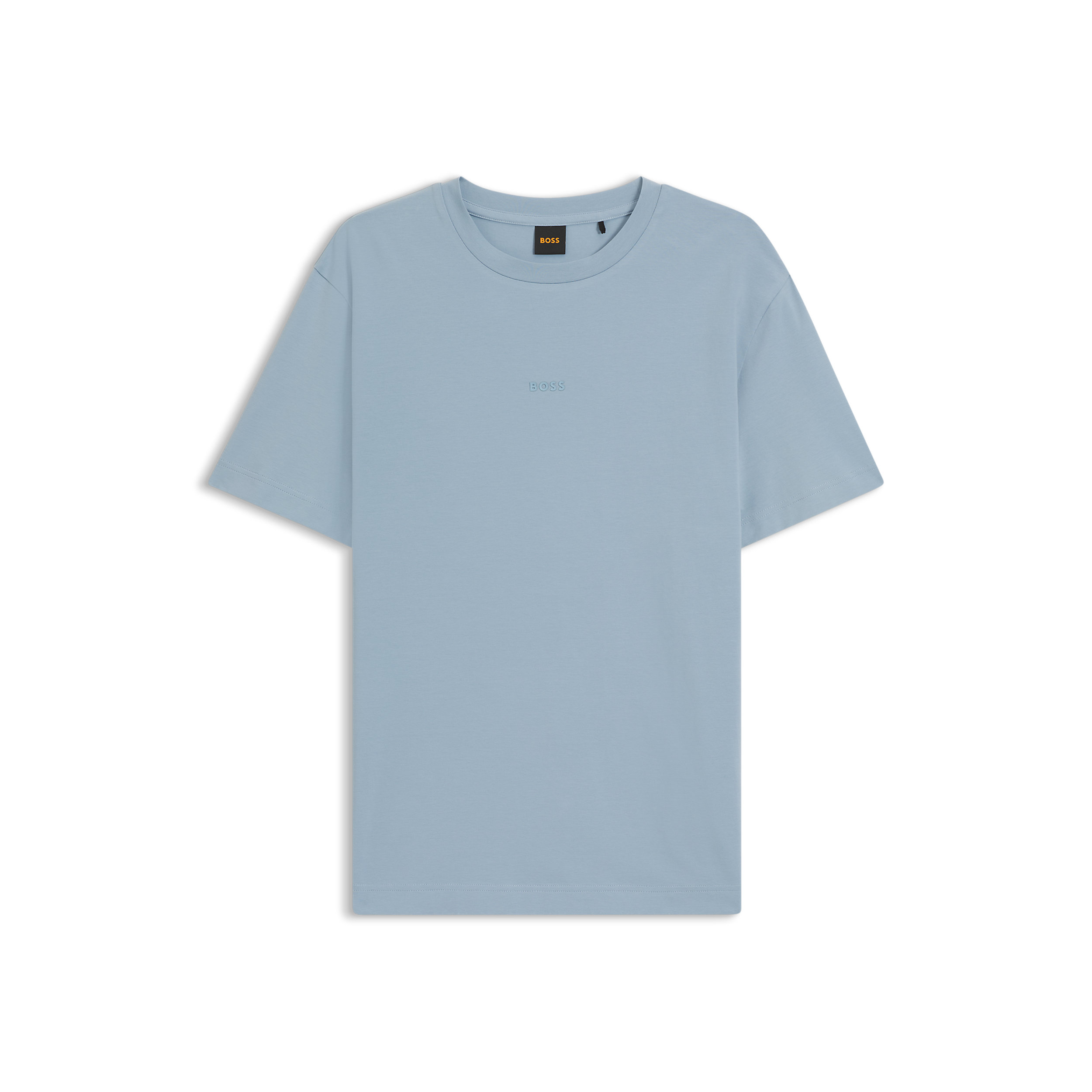 In soft cotton with stretch for comfort, this BOSS Menswear T-shirt is a timeless casual staple. Laid-back fit with rubberised logo print.