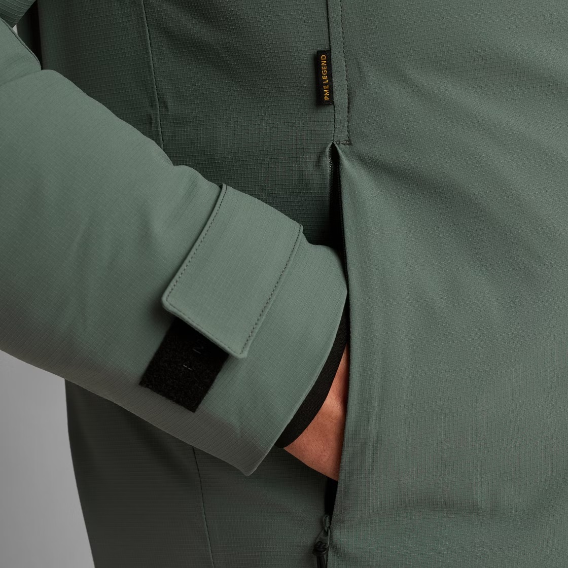 De PME Legend Crewcat is gemaakt van een stevige, tweelaagse ripstop met een waterafstotende finish. De jas is wind- en waterdicht, lichtgewicht en ademend, wat hem perfect maakt voor allerlei weersomstandigheden. De Tech Down vulling, de windcatcher met kinbeschermer, de afneembare, verstelbare capuchon en de elastische cuffs zorgen voor extra draagcomfort. De jas is voorzien van twee zijzakken met rits en fleece voering, een borstzak met rits en twee binnenzakken met rits.
