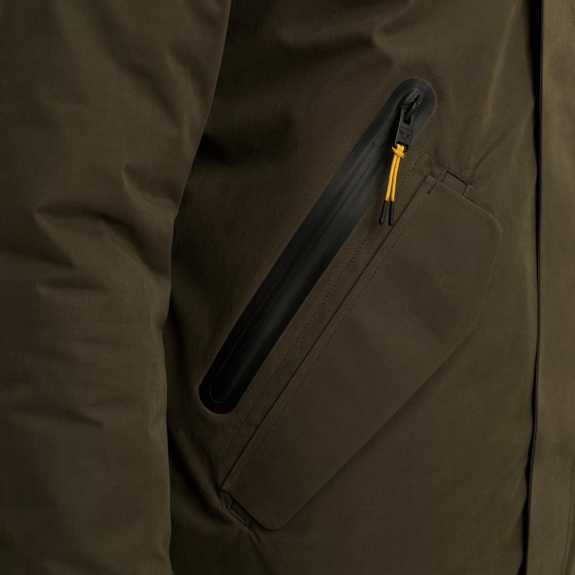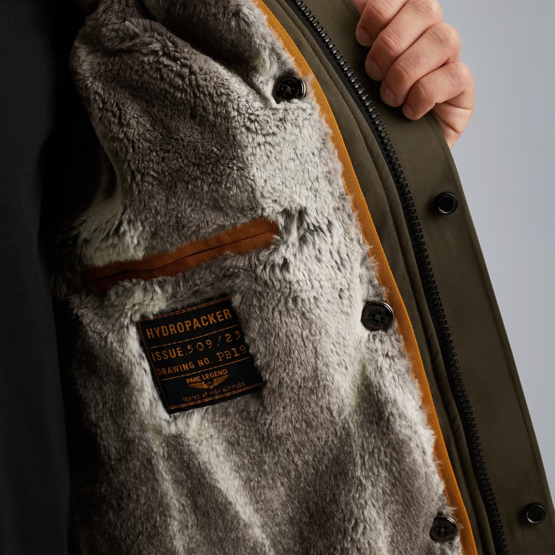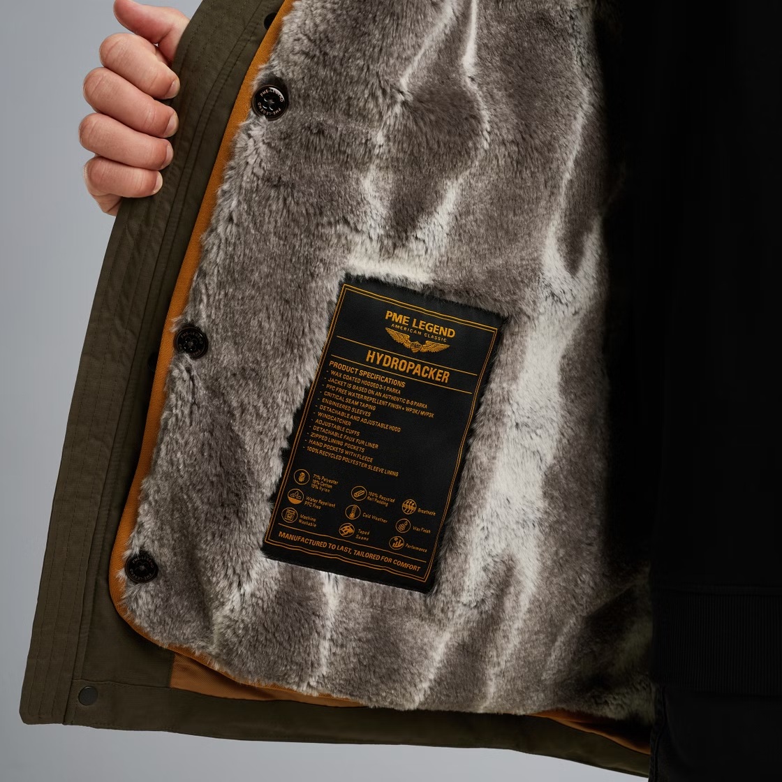 De PME Legend Hydropacker is geïnspireerd op een authentieke B-9 parka. De uitneembare voering van imitatiebont zorgt niet alleen voor comfort, maar maakt de jas ook extra praktisch. Je kunt hem zo namelijk op verschillende manieren dragen, met en zonder de voering. De ademende, wind-en waterdichte jas heeft een afneembare, verstelbare capuchon, geribde cuffs en een windcatcher. Twee zijzakken met klep en fleece voering, daarboven twee zijzakken met rits en een binnenzak met rits zorgen voor veel opbergruimte.