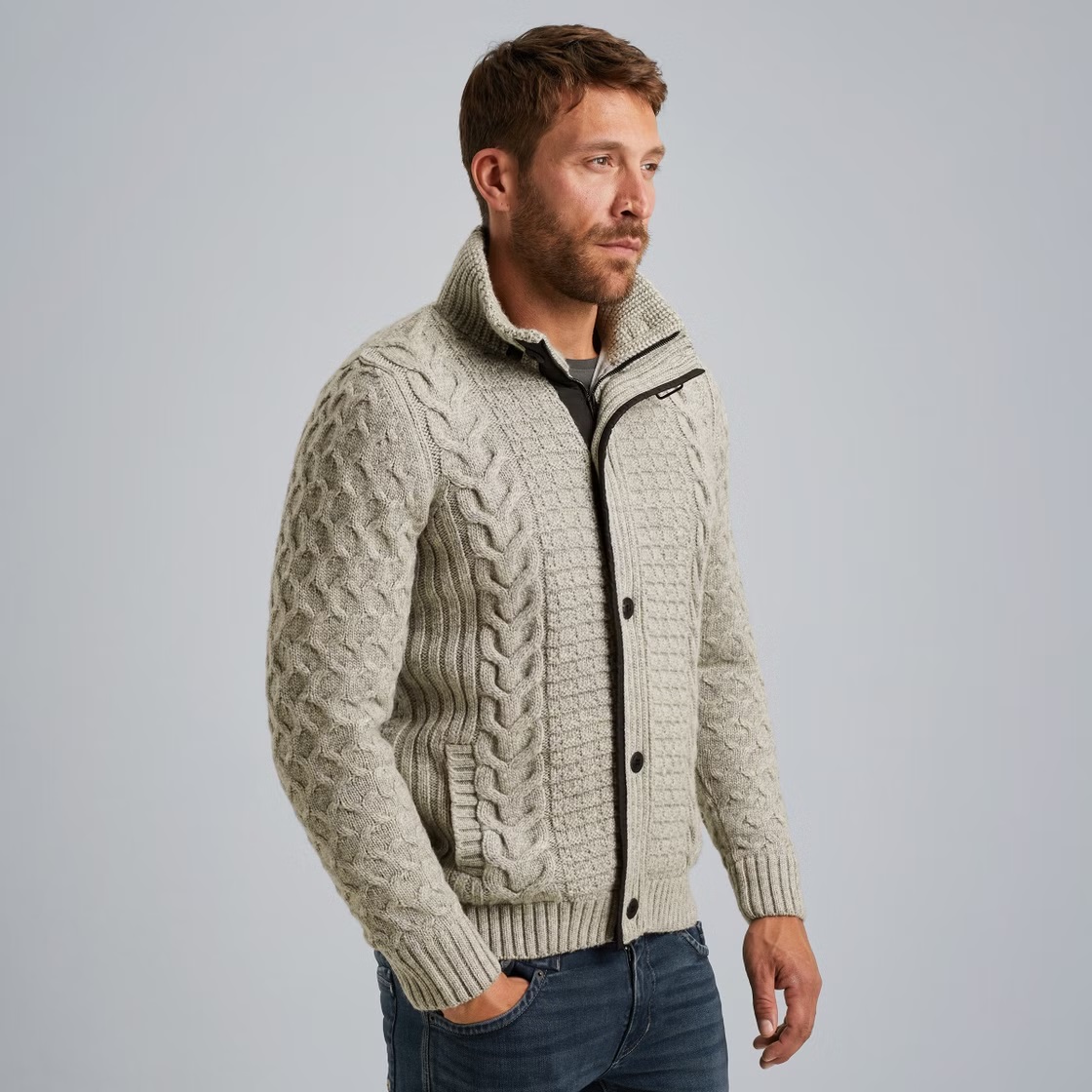 Al meer dan 10 jaar een echte icon in de PME Legend collectie. Dit zware, gebreide vest, geïnspireerd op originele fisherman’s knits, is gemaakt van een wolblend en is volledig gevoerd. De verschillende kabelpatronen, de gespsluiting bij de kraag en de cargo details geven dit PME Legend vest een stoere look. Een echt in-between item dat ook goed te dragen is als outerwear tussen de seizoenen in.
