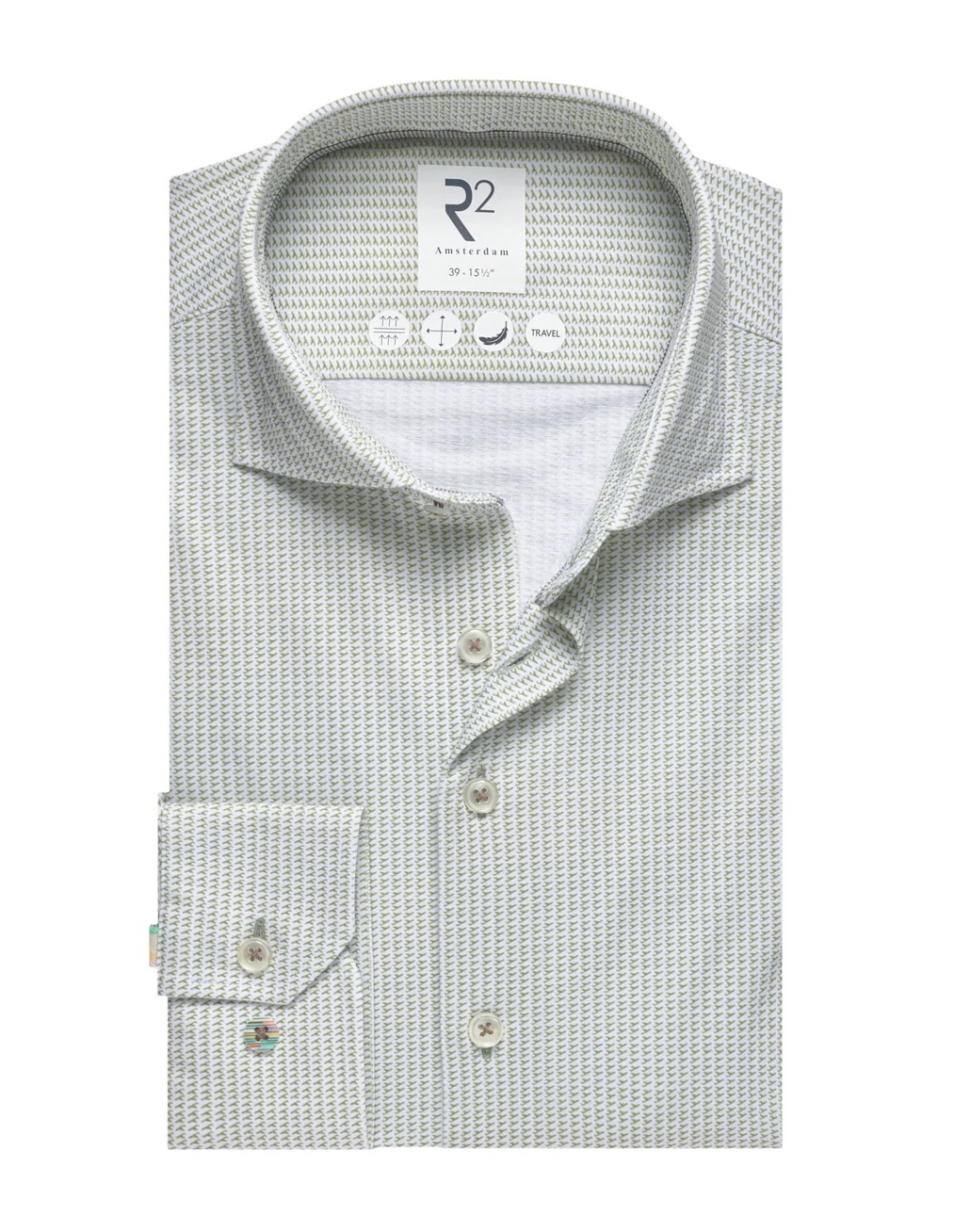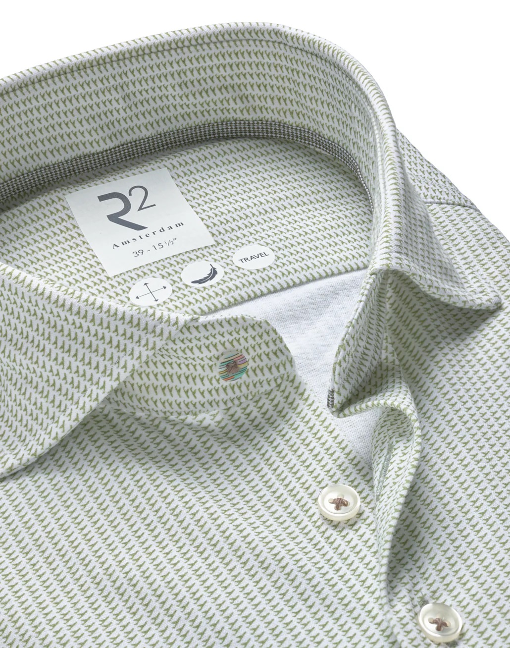 Dit traveloverhemd is gemaakt van een stof met Sorona®. Het materiaal voelt comfortabel en soepel aan, waardoor het overhemd gemakkelijk met het lichaam meebeweegt en de hele dag zijn vorm behoudt. Sorona® is gedeeltelijk plantaardig en vereist minder grondstoffen om te produceren, waardoor dit overhemd een bewustere keuze is zonder in te boeten aan comfort of uiterlijk.