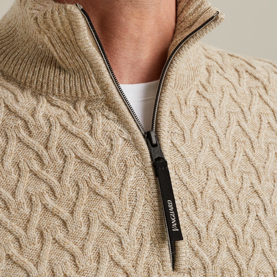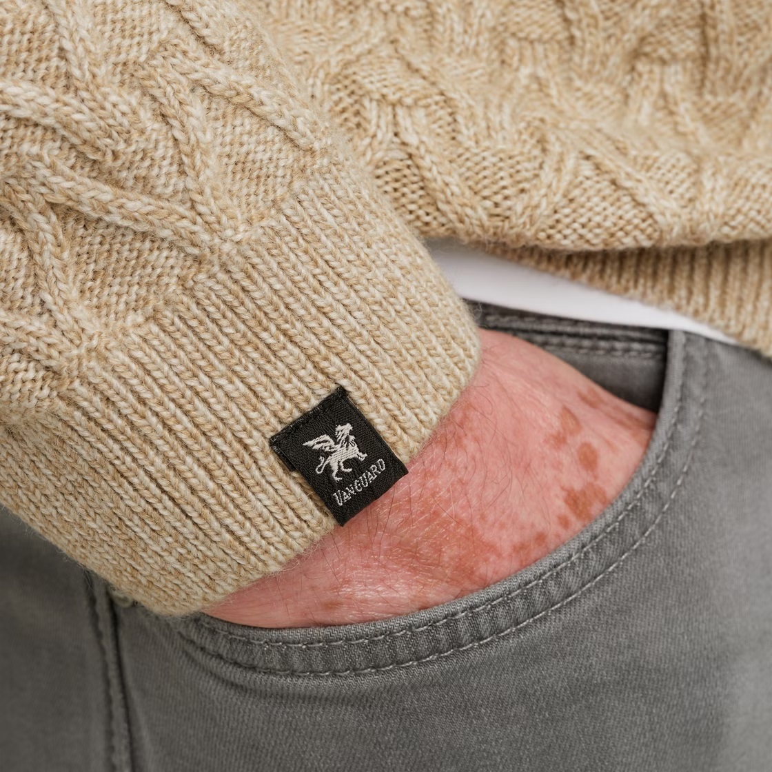Op zoek naar een stijlvolle, comfortabele Vanguard trui voor je garderobe? Dit item met opstaande kraag en halve rits is voorzien van een stoere allover structuur. De iconische Vanguard details, zoals de badge op de mouw, maken deze stijl helemaal compleet. Draag deze veelzijdige trui met een Vanguard denim of chino voor een stoere, tijdloze look.
