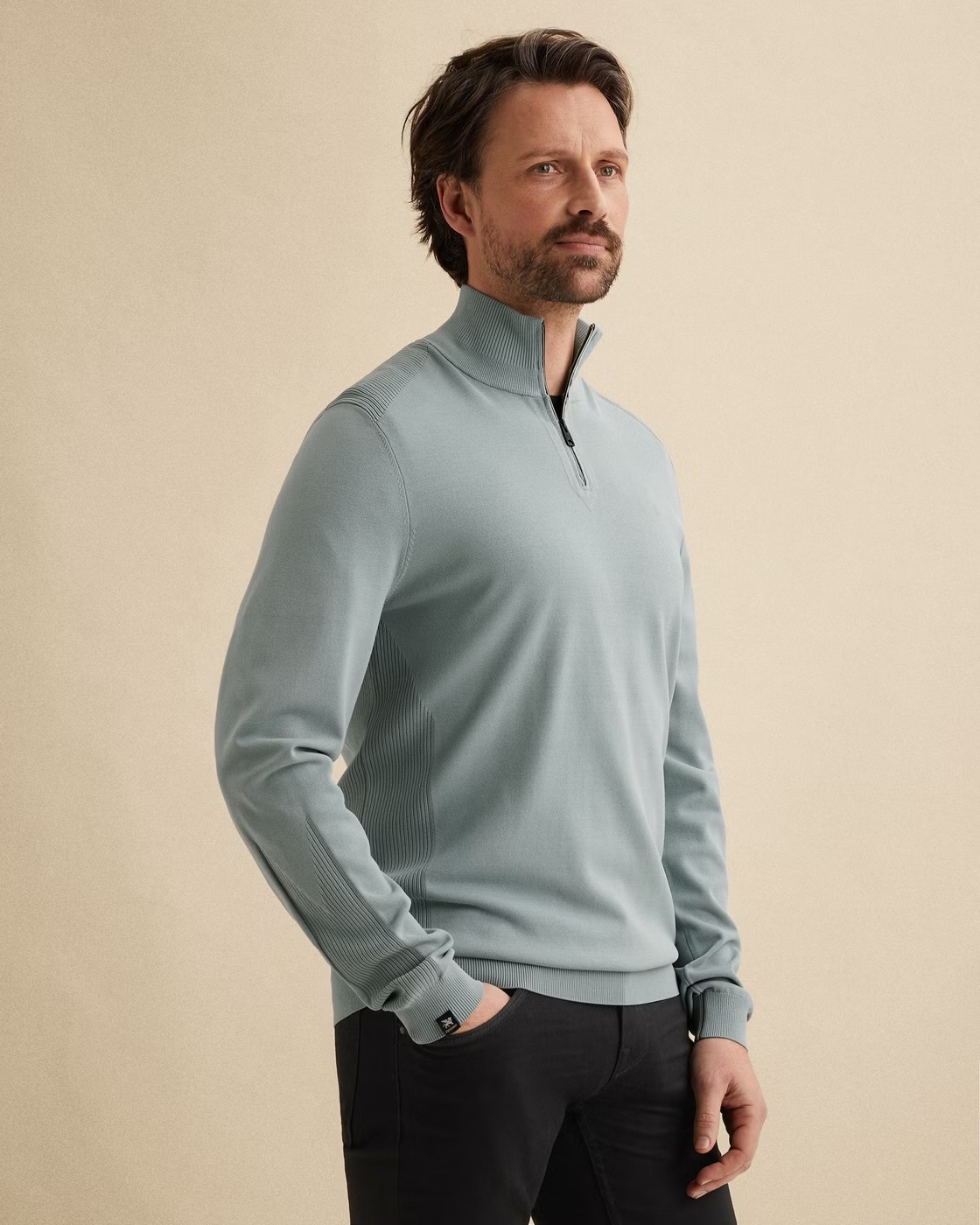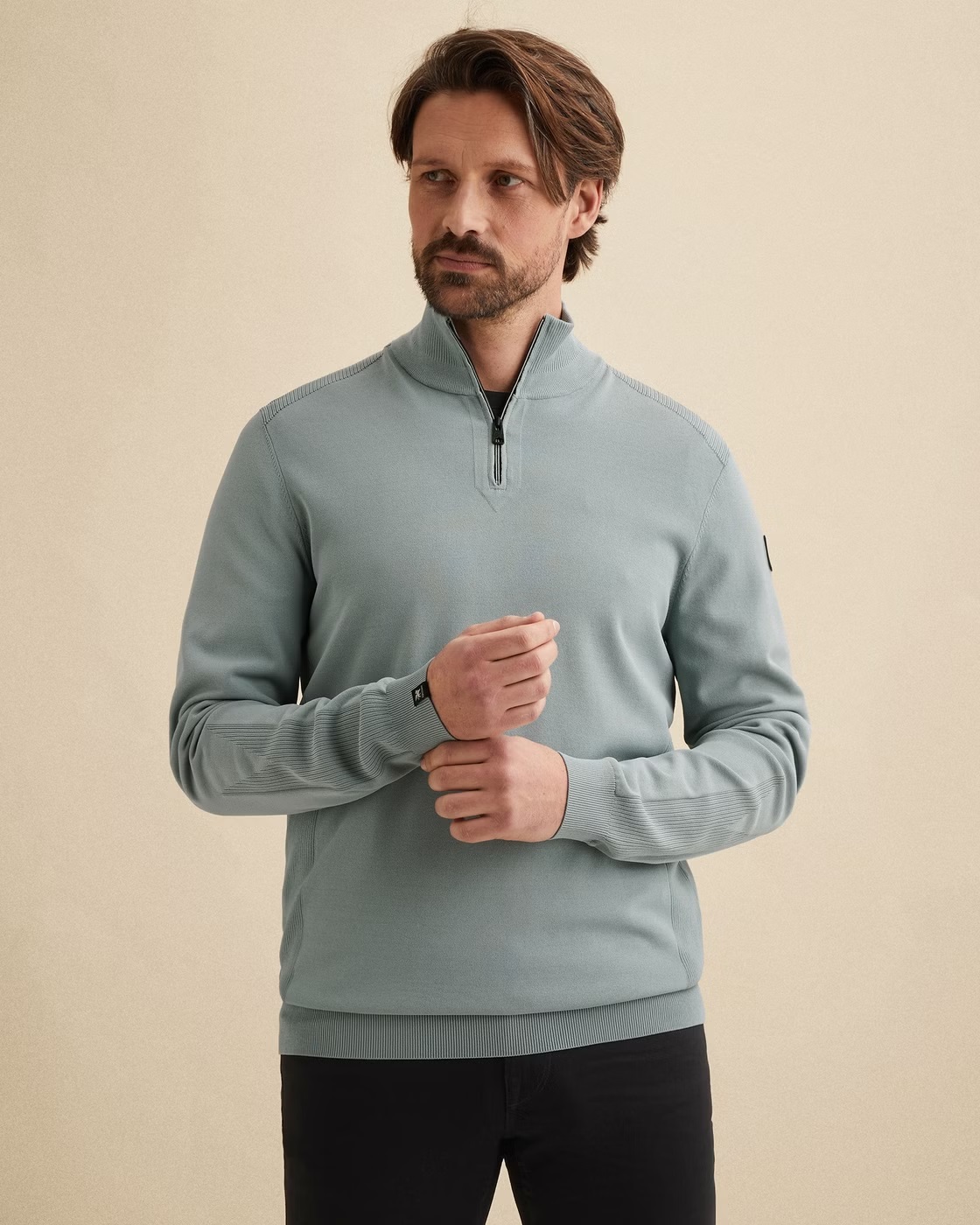 Deze gebreide Vanguard trui met halve rits heeft een sportieve en stijlvolle look. Het lichtgewicht, luchtige materiaal met stretch zorgt voor optimaal draagcomfort. De verschillende structuren en tijdloze details maken deze stijl compleet.