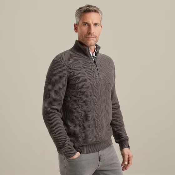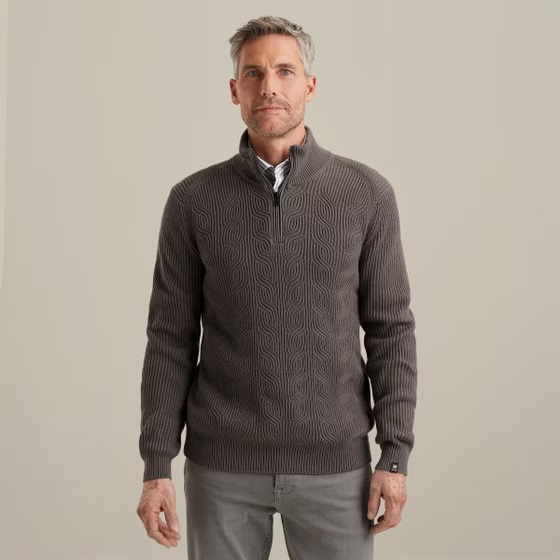 Op zoek naar een stijlvolle, comfortabele Vanguard trui voor je garderobe? Dit item met opstaande kraag en halve rits is uitgevoerd in een comfortabele wolblend en voorzien van een stoere, ingebreide kabelstructuur. De tijdloze Vanguard details maken deze stijl helemaal compleet.