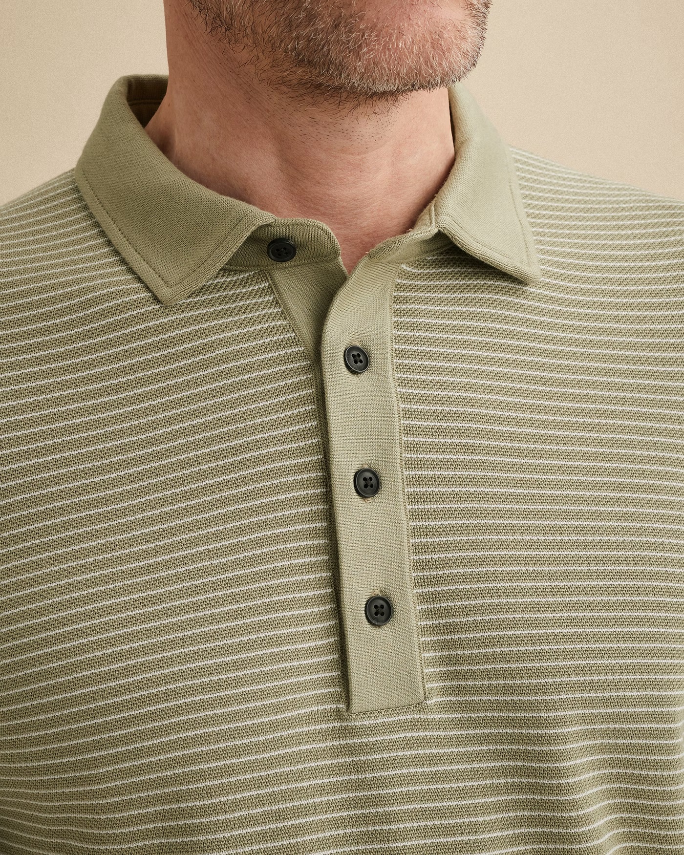 Deze gebreide Vanguard polo is uitgevoerd in katoen/modal en voorzien van een fijn ingebreid streeppatroon. De stijlvolle structuur en de cleane afwerking zorgen voor een tijdloze uitstraling.